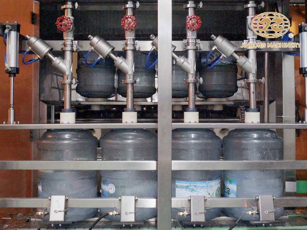 桶裝水灌裝線設(shè)備主要由清洗,灌裝,壓蓋三部分組成,主要應用于3加侖和5加侖飲用水的一體化生產(chǎn)。大桶水灌裝生產(chǎn)線由拔蓋機、內(nèi)外刷桶機、灌裝機、壓蓋機、套標機、貼標機、噴碼機、套袋機等組成。